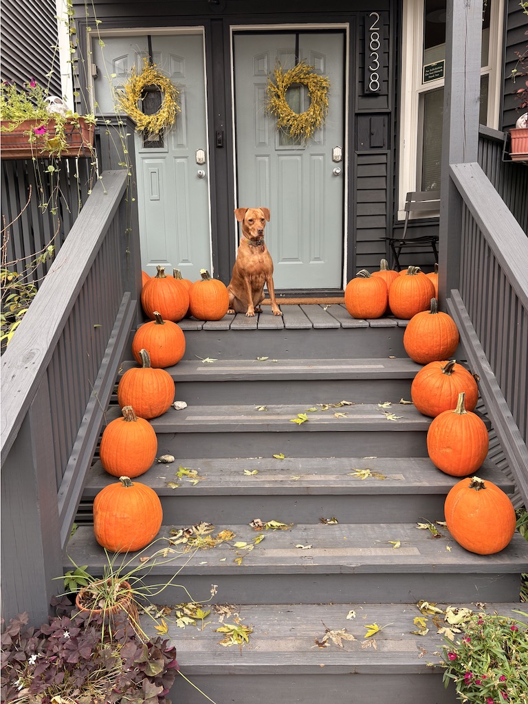 Our order of 20 pumpkins from Carniceria Ruiz came in, so they are up for grabs for everyone on the front porch at 2838. Please take one or two and the we’ll use the rest for carving on Sunday.